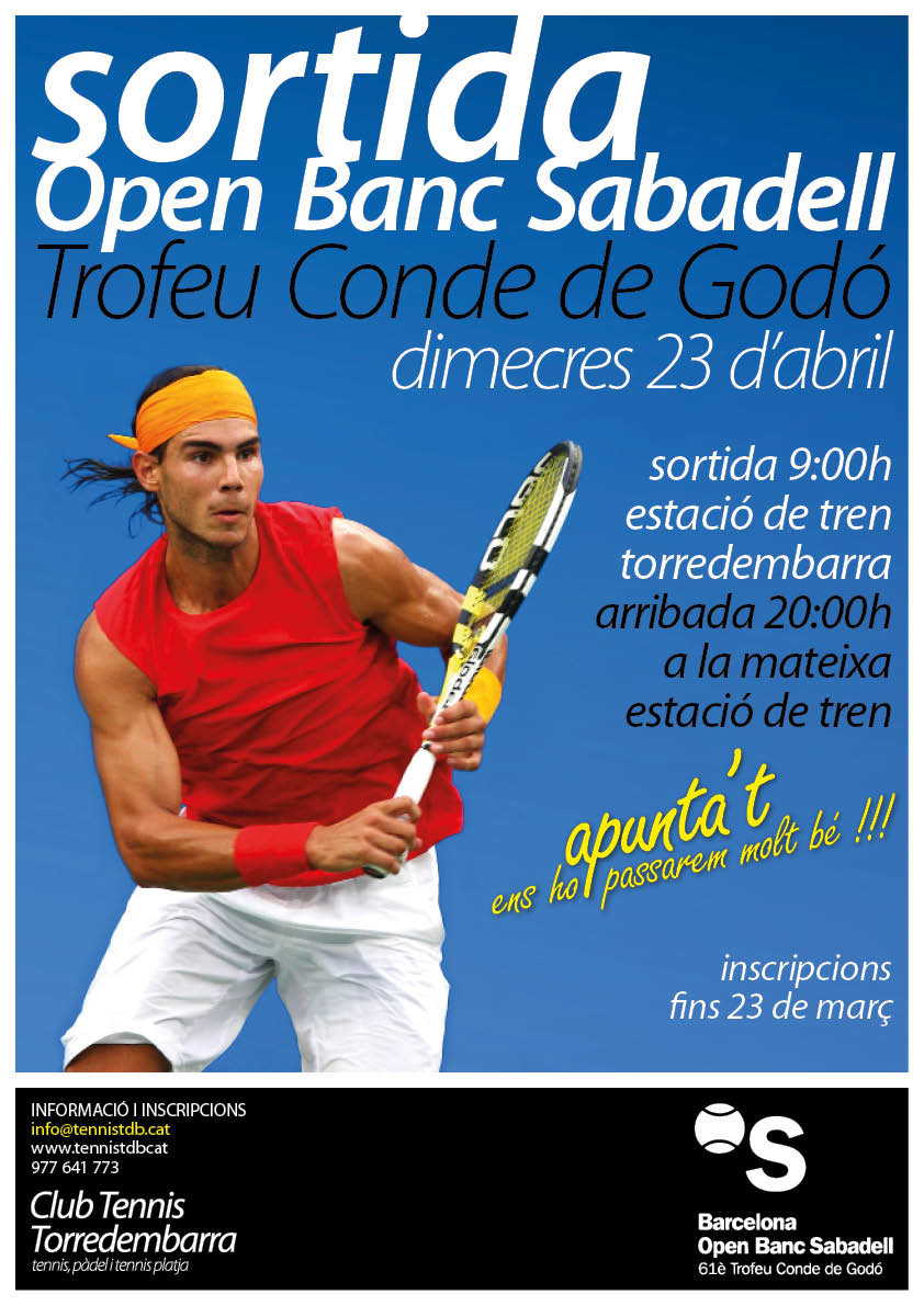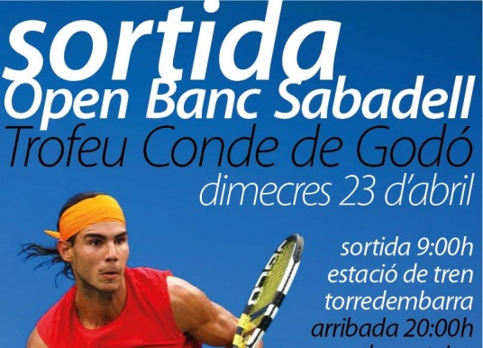 El proper dimecres 23 d'abril, un any més, organitzem la sortida al Torneig de Tennis Internacional Barcelona Open BancSabadell - Trofeu Conde de Godó.
