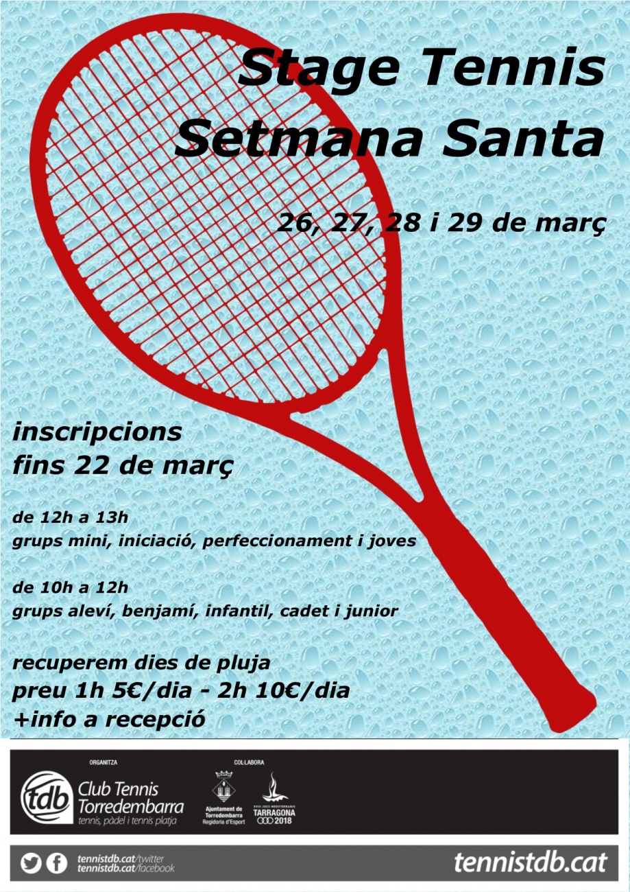Us informem que ja estan obertes les inscripcions de l'Stage de Tennis de Setmana Santa.