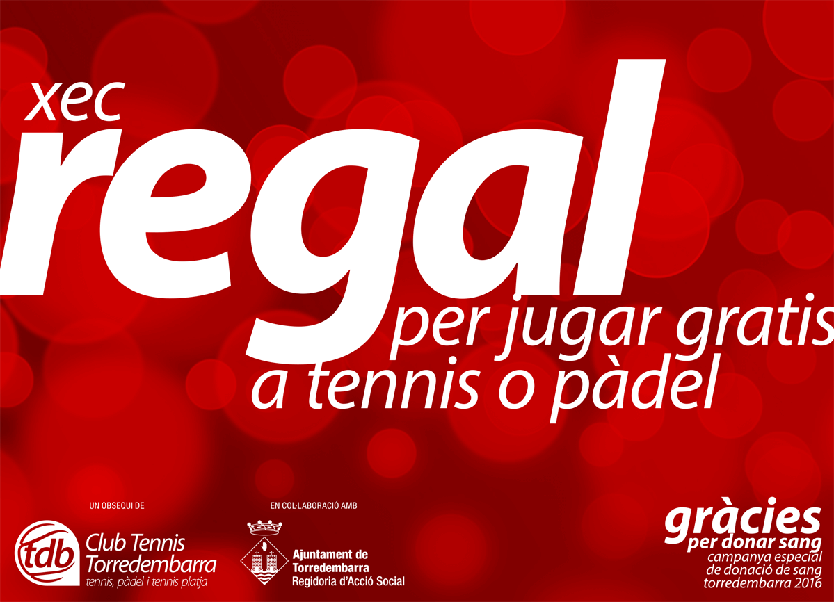 Amb la finalitat d'agraïr i incentivar la participació en aquesta campanya especial, tots els donants de sang rebran un Xec Regal per jugar a tennis o pàdel (valorat en 6€)