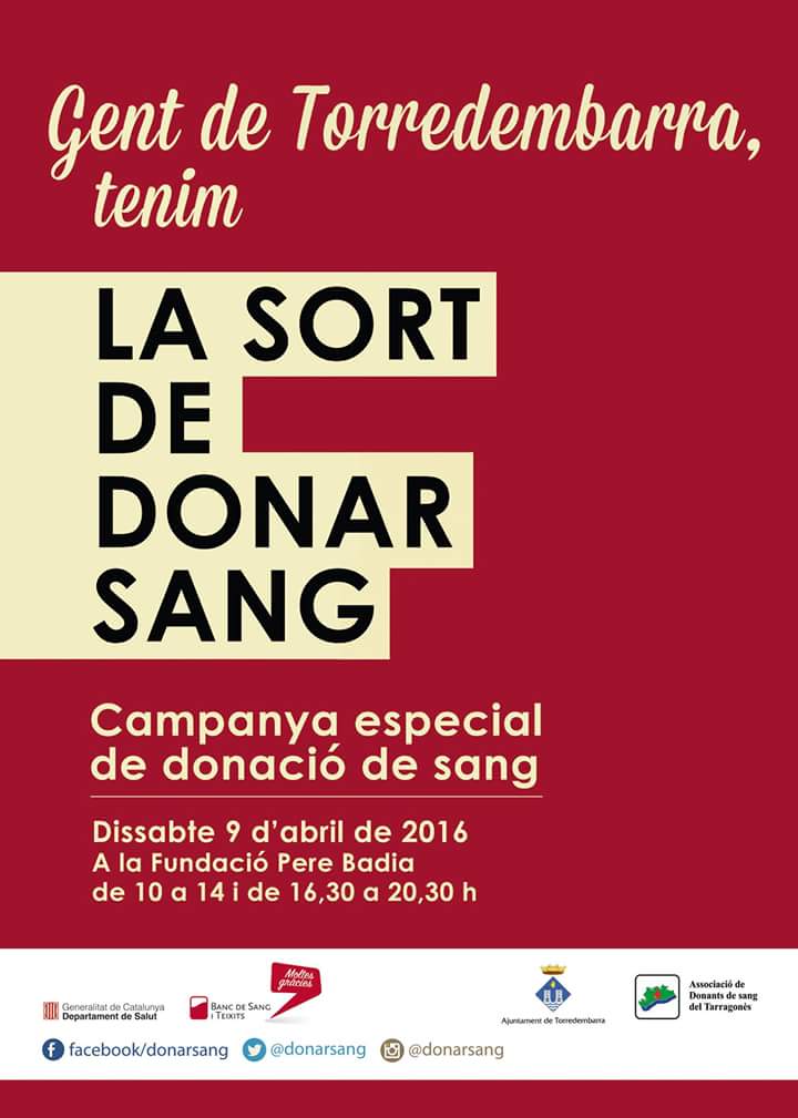 El proper dissabte 9 d'abril, la Regidoria de Sanitat de l'Ajuntament de Torredembarra i el Banc de Sang i Teixits organitzen una nova Campanya Especial de Donació de Sang a Torredembarra. El TennisTDB s’hi torna a adherir.
