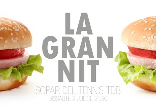 Si hi ha una data marcada en vermell en el calendari dels socis i sòcies del Tennis TDB, per tots els nostres practicants de Tennis, Pàdel i Tennis Platja, aquesta és la que correspon a la nit de la celebració de La Gran Nit del TennisTDB, l’esdeveniment de germanor més important del nostre Club, on la gastronomia, l’entrega de trofeus dels nostres torneigs i la festa entre els assistents i comensals mai estan renyides.