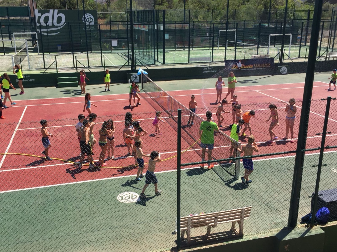 Per començar, tots els alumnes de l'escola van poder jugar a tennis a les pistes del TennisTDB, es va fer la clàssica guerra d'aigua, on tots els nens van acabar ben remullats, però, no només els nens van quedar ben xops, sinó que, els monitors de l'escola van patir també una bona remullada!