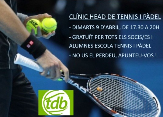 El TennisTDB gaudirà d'un Clínic Head de Tennis i Pàdel de caire didàctic, gratuït i obert a tots els socis, sòcies, usuaris i alumnes de l'Escola del TennisTDB.