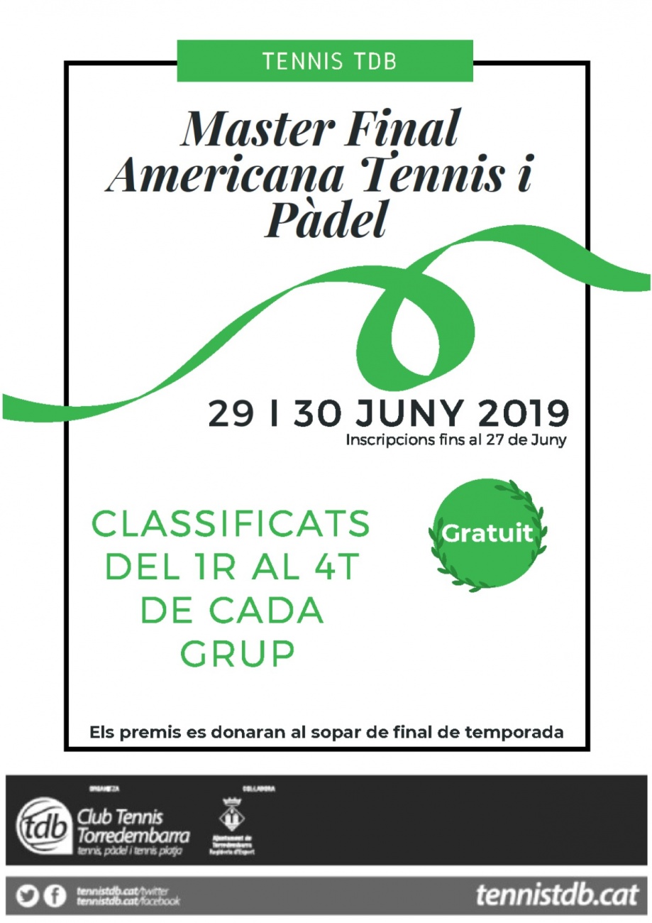 Per primera vegada, Torredembarra acollirà el Màster Final de l'Americana de Pàdel "As Publicitari", l'Americana de Tennis "Foto 13" i l'Americana Mixta de Pàdel "Construccions Llima" , Màster que organitza el TennisTDB.