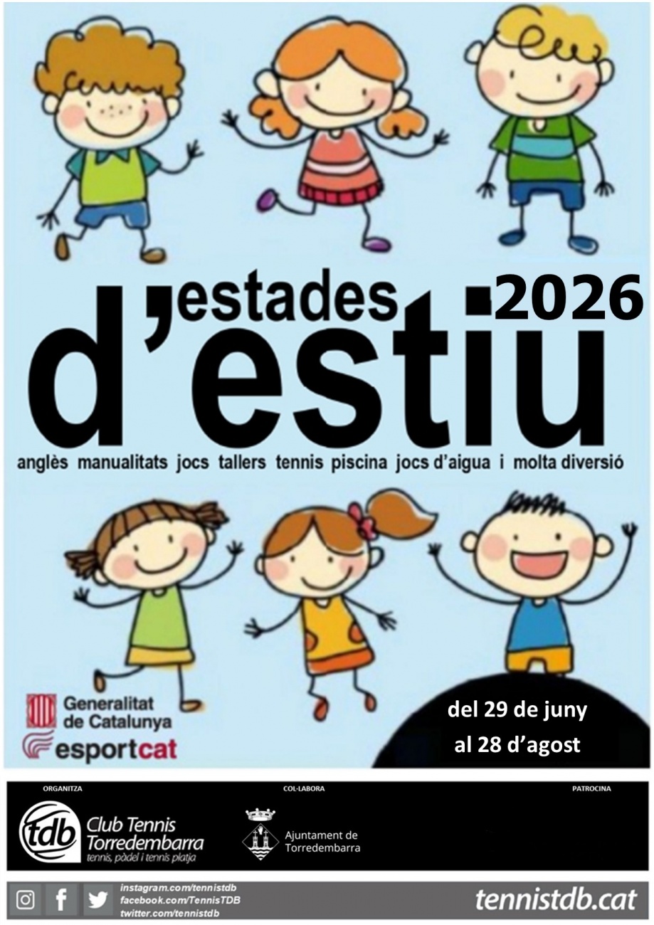 El TennisTDB organitza un any més les Estades d’Estiu amb un alt component lúdic i molta diversió, monitors i monitores titulats i amb experiència en l’àmbit del lleure i esportiu, pràctica d’anglès amb els monitors Language Assistant (practicant i millorant a través de conversa i jocs), així com també tot tipus de pràctiques esportives