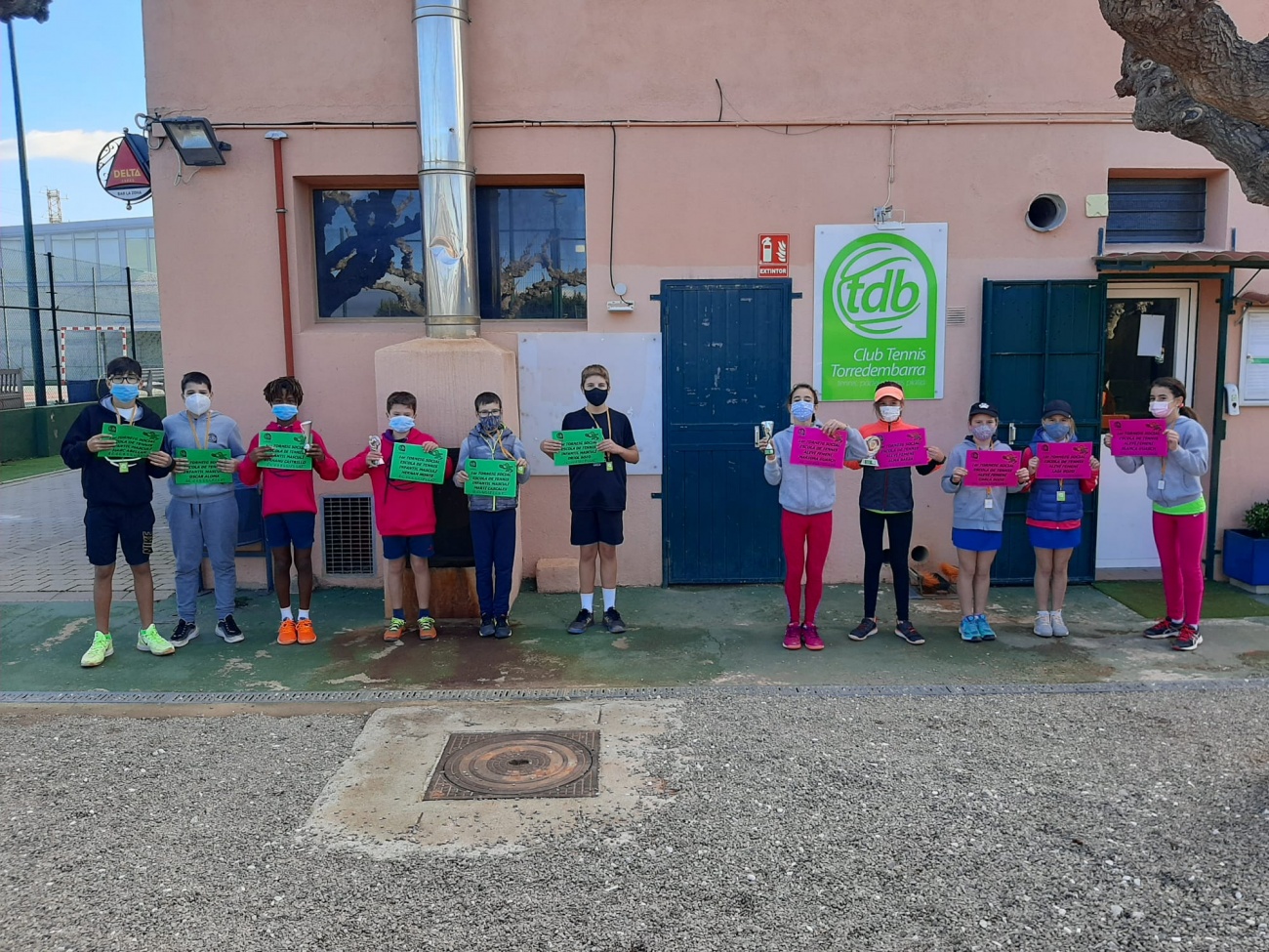 Increïble matinal a les nostres pistes, tot una festa tennística amb la plana major de les alevins i els infantils de l'escola, que avui han disputat la fase final del Torneig Social de l'Escola de tennis en la seva categoria.