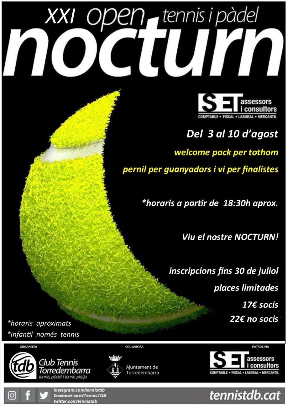 Un any més, Torredembarra acollirà el XXI Open Nocturn de Tennis i Pàdel SET Assessors  que organitza el TennisTDB del 3 al 10 d'agost